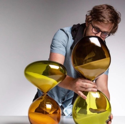 A graduate of the National Art School in Canberra, Thomas has trained in traditional craftsmanship while pursuing conceptually driven explorations in glass. His recent body of work centres on a series of Clepsammia—hourglass forms that evoke anatomical and emotional states, referencing the circulatory system and cycles of time. These works explore internal structures through hot sculpting techniques, creating vessels that oscillate between abstraction and figuration.