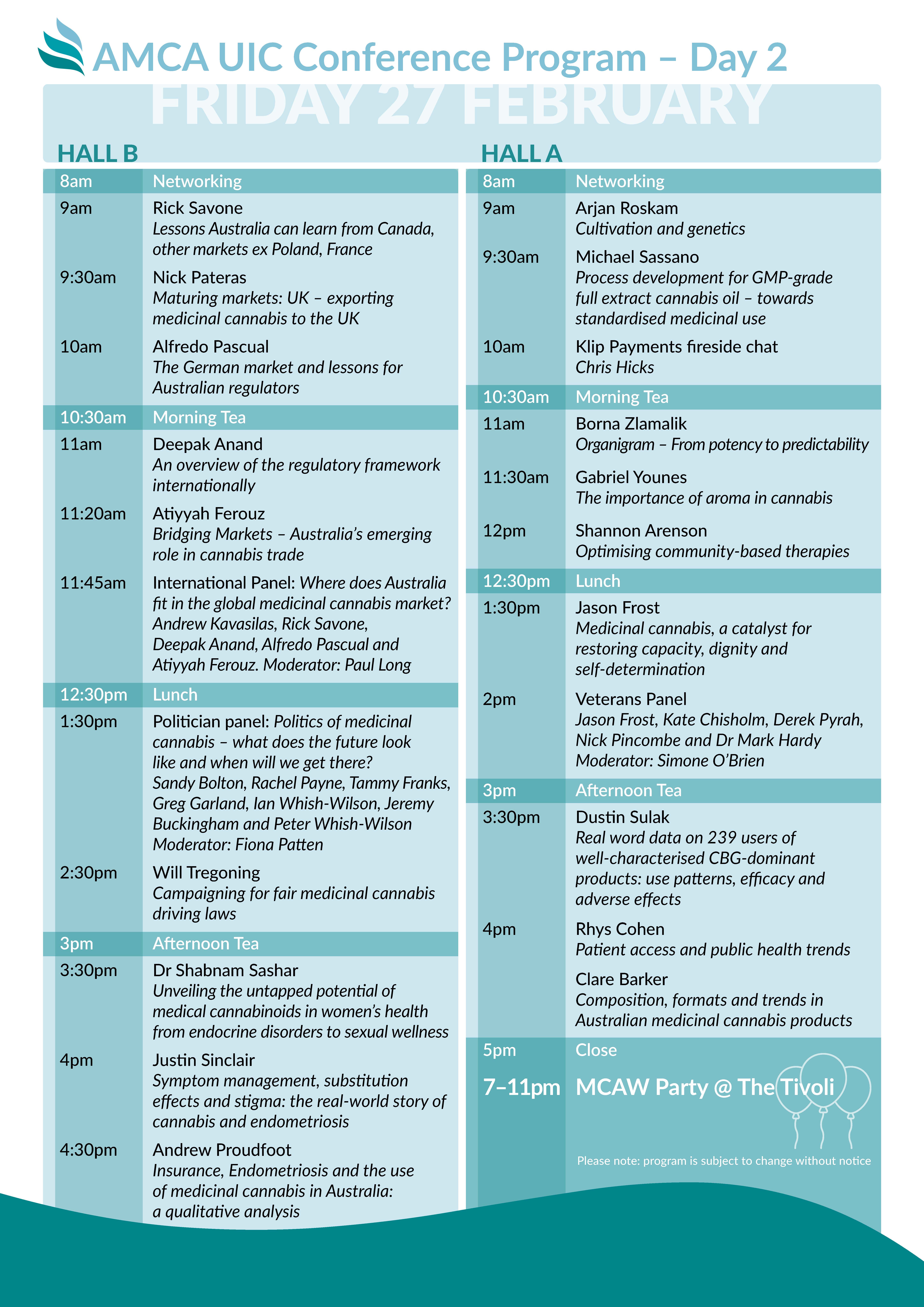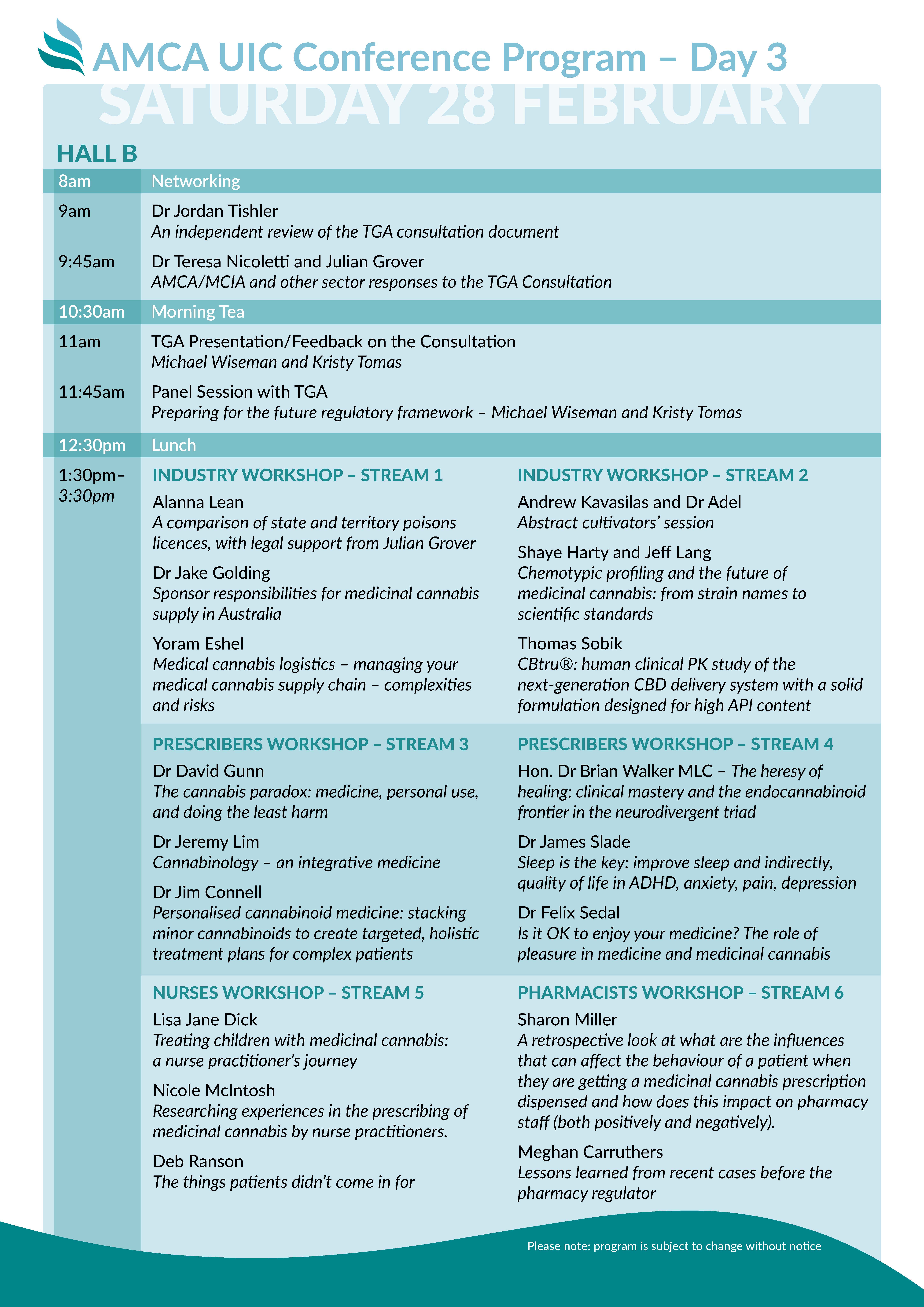 *Program subject to change without notice
